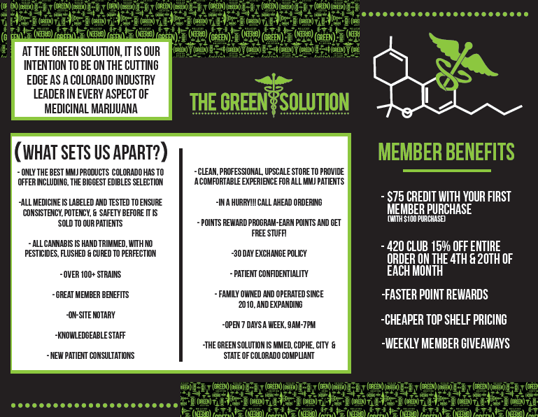 The Green Solution is Family-owned, operating 20 stores in Colorado and branching out to other legal states. Expanding quickly since 2012, TGS is highly awarded and offers concierge-level service and expertise. The Green Solution has the largest selection of marijuana and marijuana-infused products in Denver and the surrounding areas.